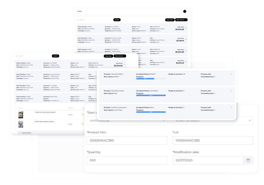 Organización simplificada del catálogo con estructuras de precios y comisiones personalizadas. El procesamiento de pedidos personalizable y los flujos de trabajo automatizados mejoran la eficiencia y precisión.