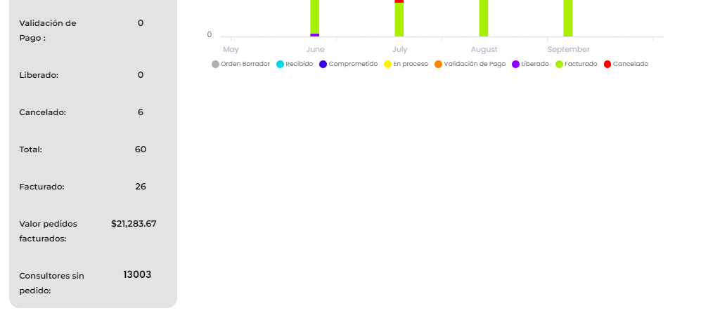 - Accesibilidad controlada por Roles: Controla quién tiene acceso a este widget, asegurando que solo los roles relevantes en tu empresa puedan ver los datos pertinentes a los usuarios que no han realizado pedidos.