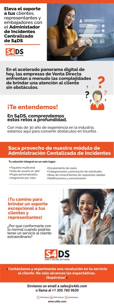En S4DS, comprendemos íntimamente estos desafíos. Con más de 30 años de experiencia en la industria de la Venta Directa y el Retail Omnicanal hemos visto de primera mano el poder transformador de una efectiva Gestión de Atención al Cliente. Nuestras soluciones están diseñadas para satisfacer las necesidades únicas de empresas como la tuya.