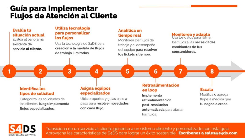 Con esta guía paso a paso, las empresas de Venta Directa y Comercio Omnicanal como la tuya, pueden pasar de un enfoque de atención al cliente caótico y único para todos a un sistema altamente organizado, eficiente y efectivo. Y con las robustas características de S4DS, no solo estás implementando workflows; estás preparando tu negocio para un éxito escalable y a largo plazo.